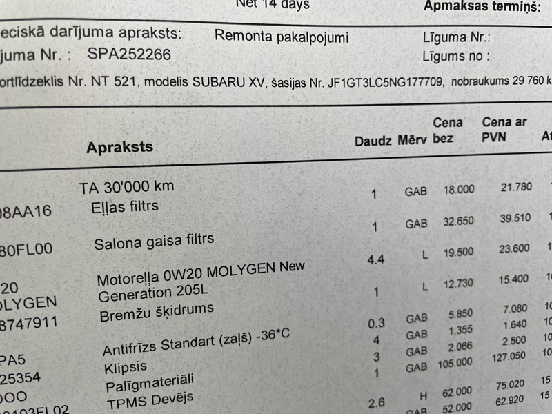 Oficiālais Subaru pārstāvis Latvijā SIA ĪLE AUTO piedāvā iegādāties mazlietotu Subaru XV automašīnu. Ir veikta regulārā apkope.